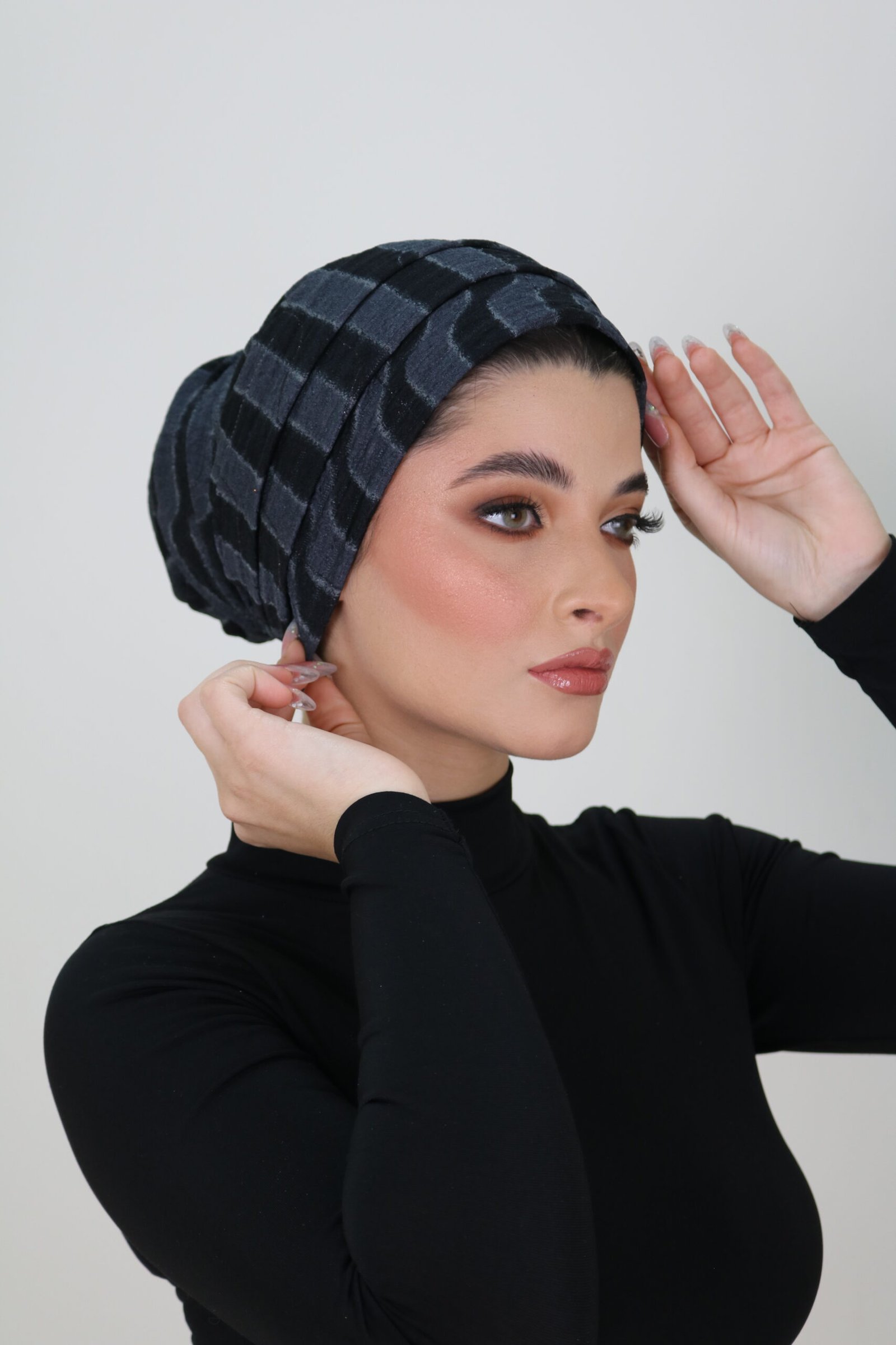 The lycra adapts naturally to the head, creating a clean shape while allowing the print to stand out beautifully. Its breathable texture makes it suitable for year-round wear, whether styled casually or dressed up.