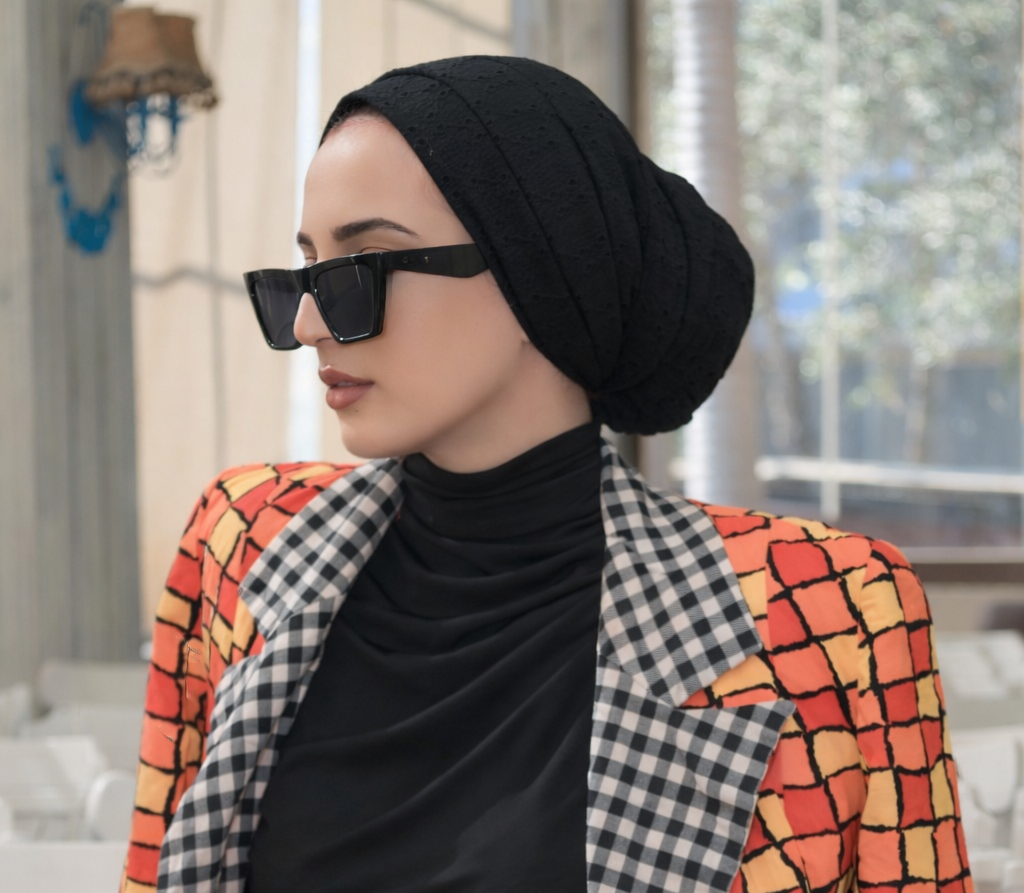 Designed with a layered shape, the turban sits securely and maintains its form throughout the day. Finished in a standard size, lycra, it fits most head shapes comfortably and is easy to wear without pins, making it a practical choice for everyday wear as well as relaxed occasions.