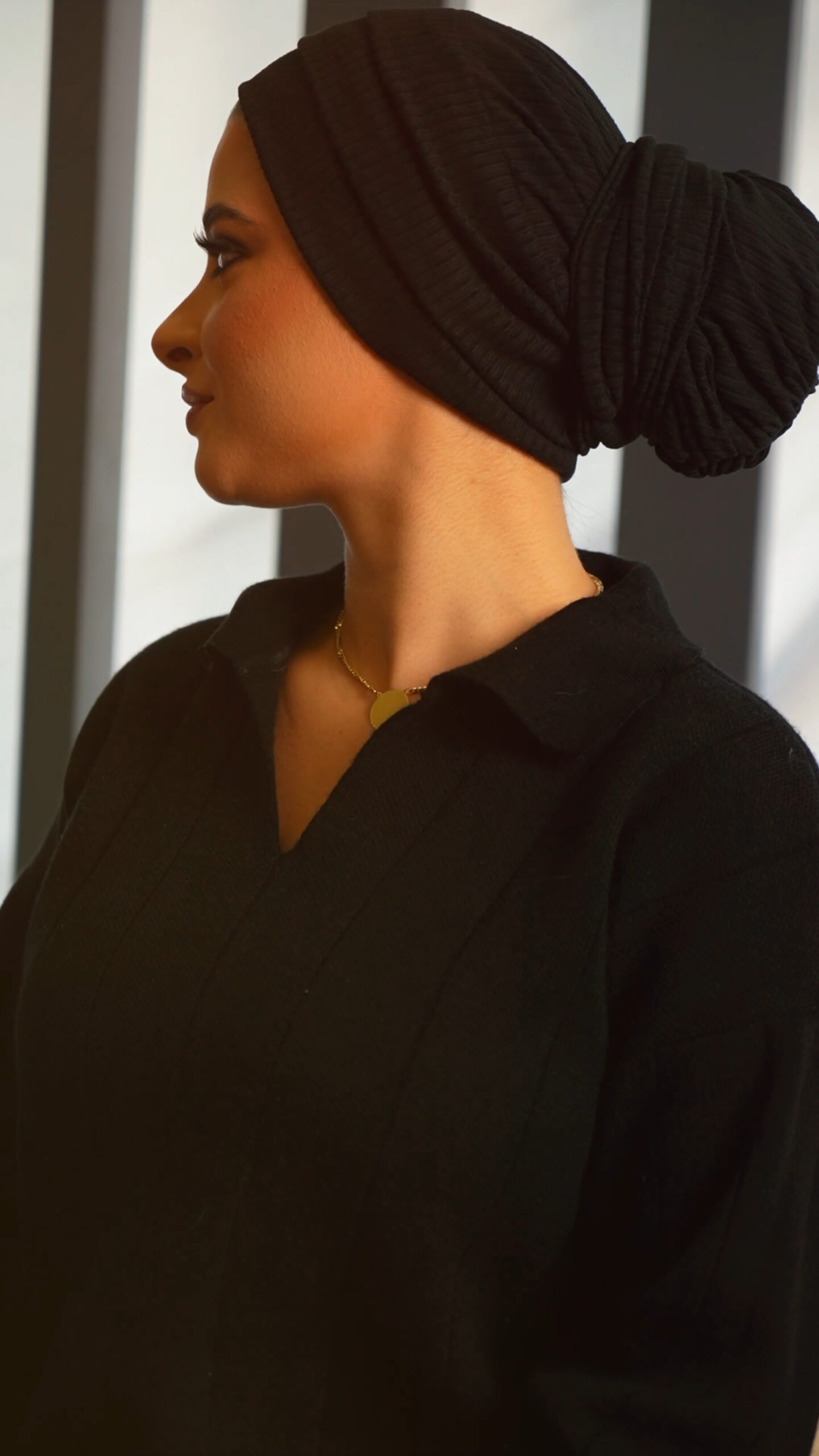 This ribbed cotton drape bun turban is designed with a soft ribbed texture that adds subtle structure and depth to a clean, modern look. Made from breathable cotton, it offers lightweight comfort while maintaining a smooth and secure fit on the head.
