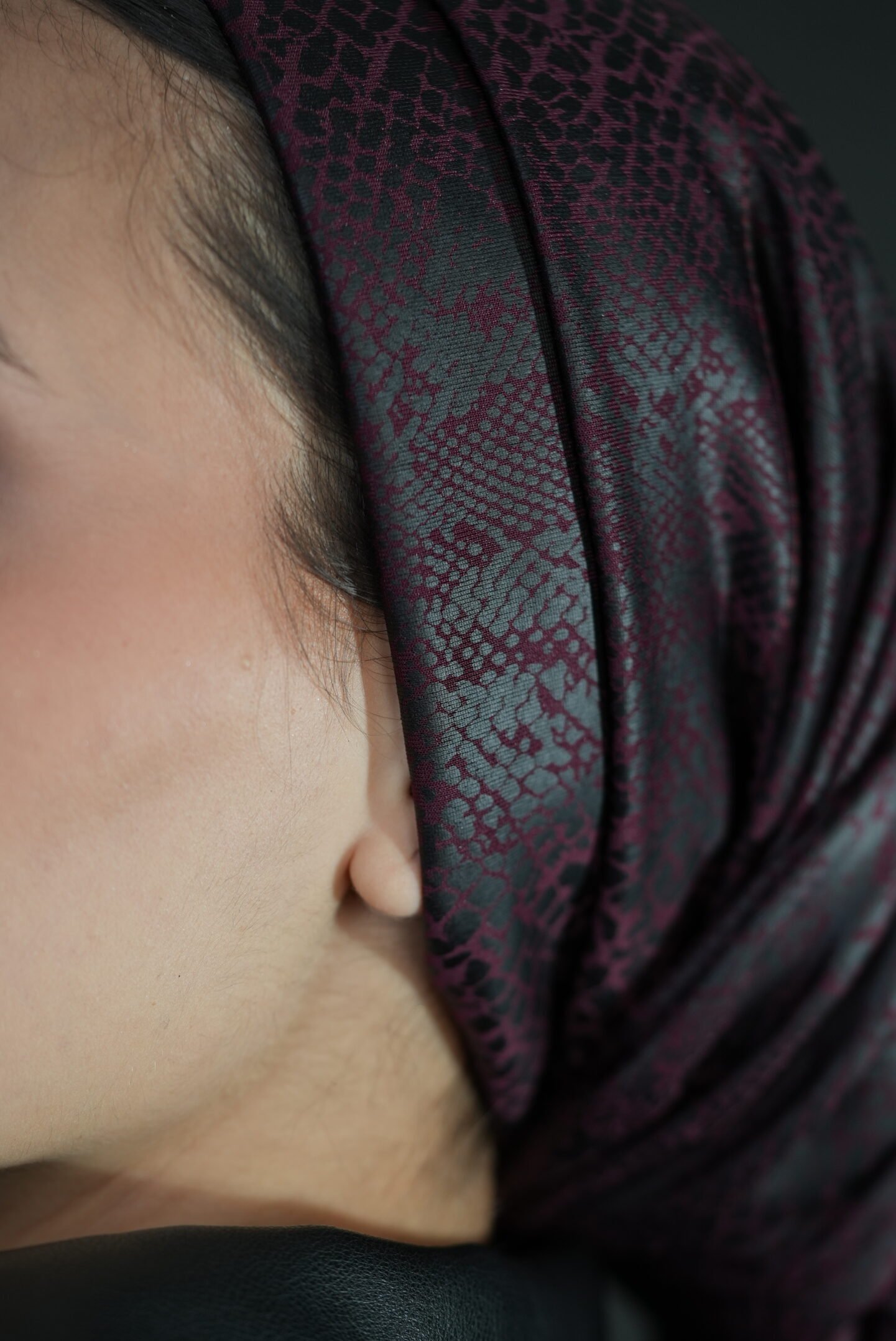 The Burgundy Noir shade blends deep wine tones with dark undertones, creating a bold yet refined look. Designed for secure wear and effortless styling, this turban balances warmth, comfort, and visual impact for everyday and elevated outfits.