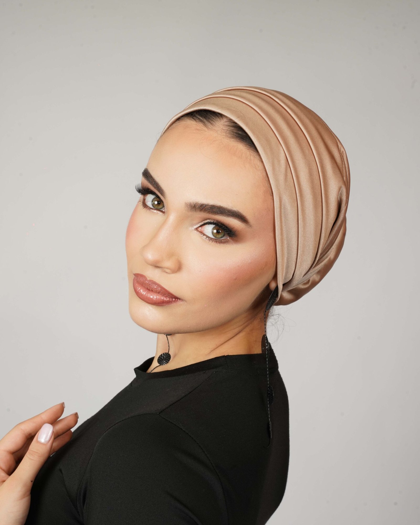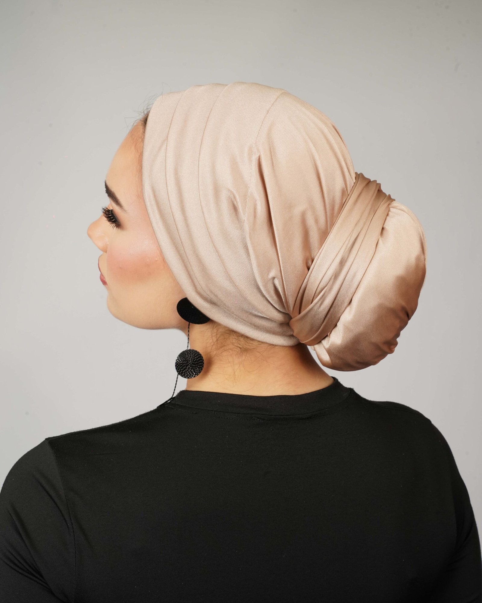 This gold lycra turban is designed with a smooth, layered finish that creates a refined silhouette from every angle. Crafted from soft, stretch lycra, it offers a comfortable fit while maintaining its shape throughout the day. The subtle gold sheen adds a touch of glow without being overpowering, making it suitable for both day and evening wear.