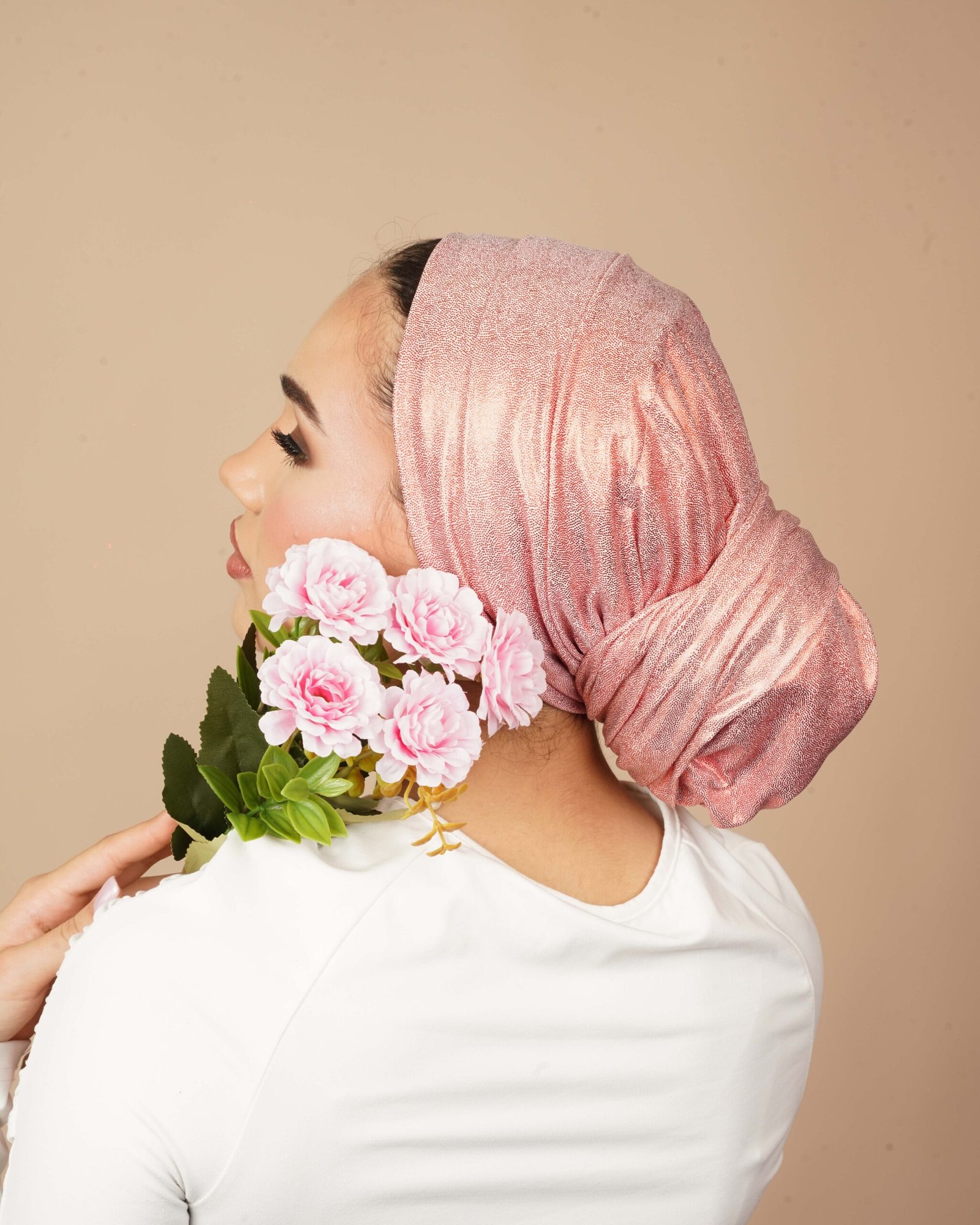 The Lamé Drape Bun Turban is designed to bring a soft glow and refined structure to your look. Crafted from lightweight lycra lamé fabric, it features a subtle shimmer with a smooth, fluid drape that catches the light beautifully without feeling heavy.