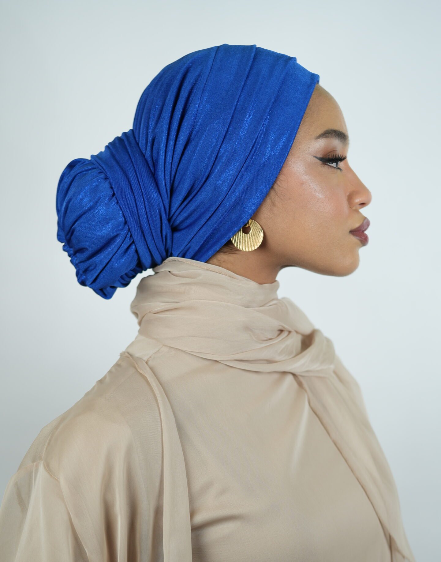 Perfect for weddings, events, and elevated outfits, the Lamé Drape Bun Turban combines comfort with a luminous finish.
