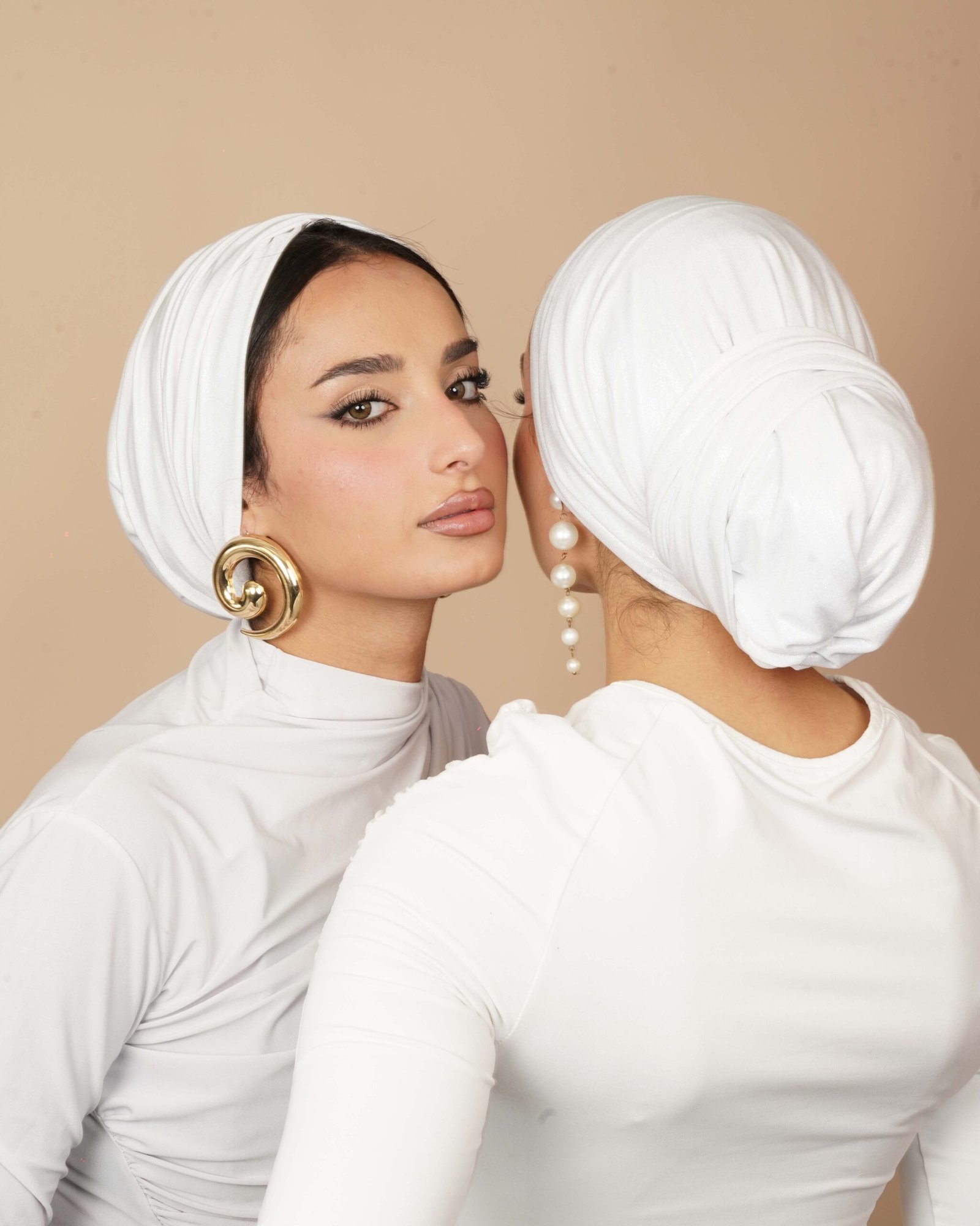 The draped bun design at the back creates a polished silhouette while offering comfortable coverage and a secure fit. Easy to wear and gentle on the head, this turban is suitable for long hours and special occasions, making it an ideal choice for elegant day looks or evening styling.