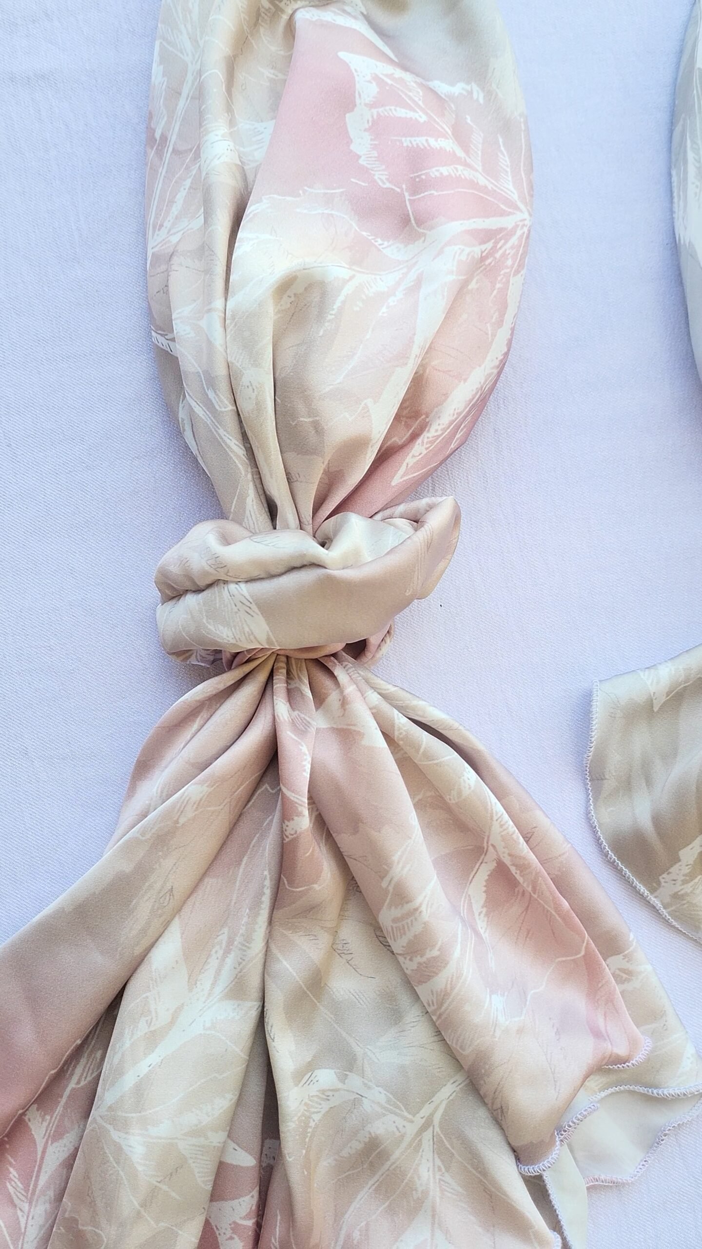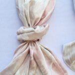 The mini tie detail is connected with a soft scrunchy, allowing the turban to sit perfectly without slipping or tightening. It creates a graceful drape at the back while keeping the front clean and structured.