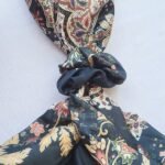 The mini tie detail is connected with a soft scrunchy, allowing the turban to sit perfectly without slipping or tightening. It creates a graceful drape at the back while keeping the front clean and structured.