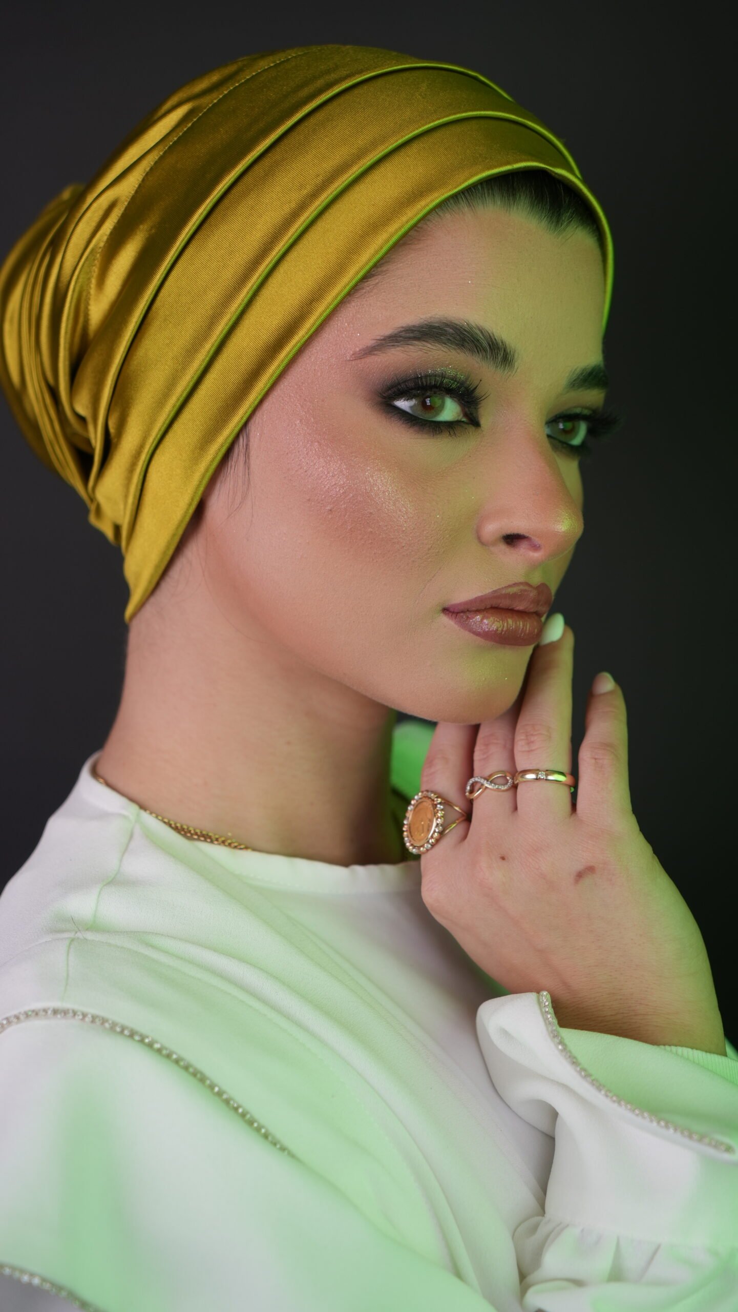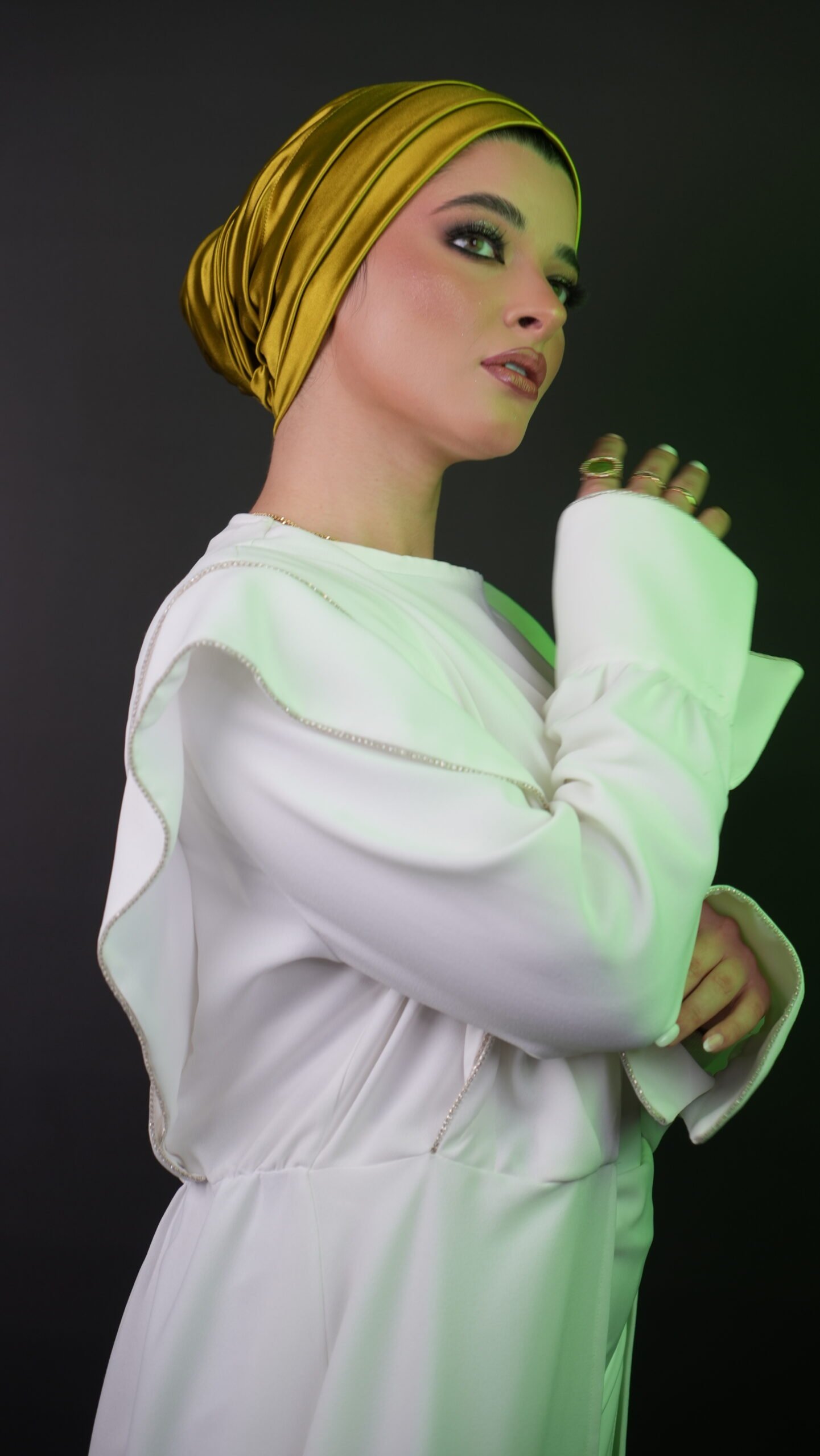 This satin lycra drape bun turban is designed to create a smooth, styled look with a soft, flowing drape at the back. Crafted from satin-finish lycra, it combines gentle shine with stretch comfort, allowing the turban to sit securely while maintaining a refined appearance.