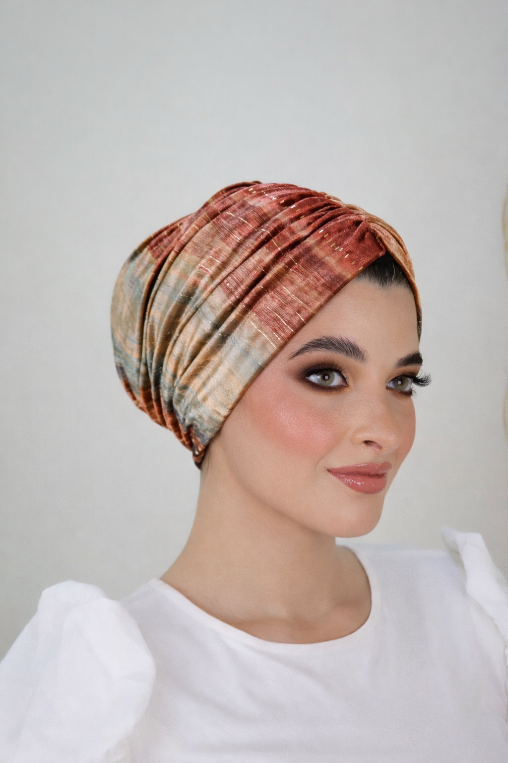 The mix of earthy tones makes this turban easy to style with neutrals, browns, greens, and warm shades, making it a versatile choice for everyday wear or elevated looks